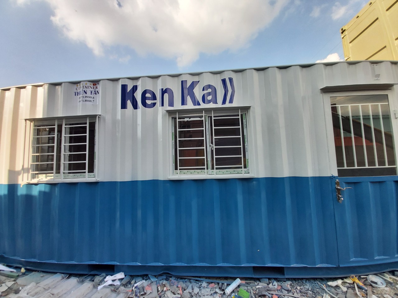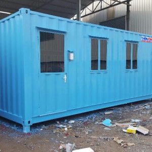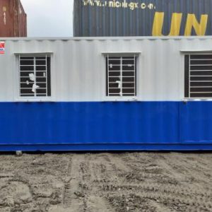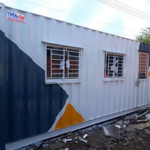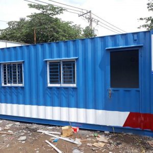 Cửa đi container | 01 cửa đi rộng 0,8m x cao 2m, dưới tôn cont + trên lắp kính thường + khung sắt bảo vệ + mái che (khóa tay gạt innox cao cấp cửa mở) |
